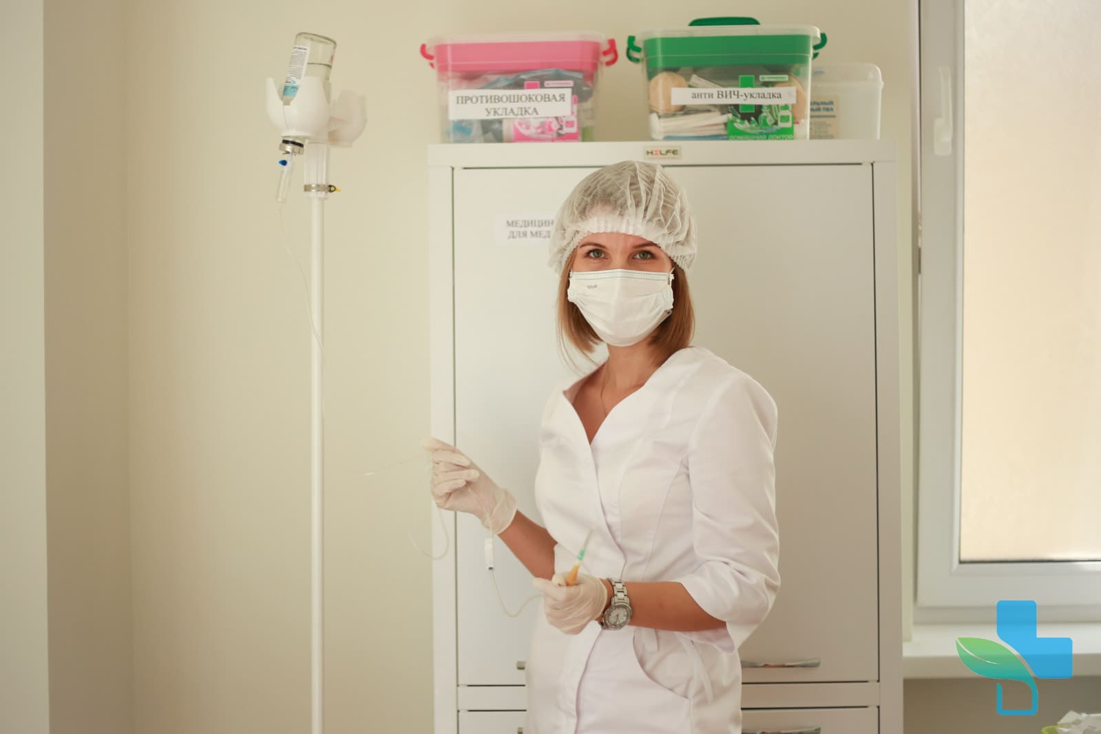 врач готовит капельницу для лечение алкогольной интоксикации